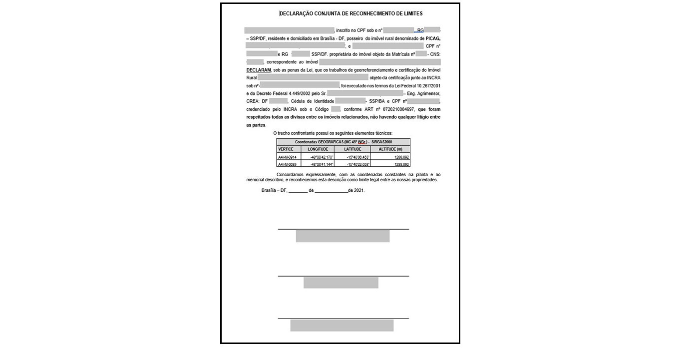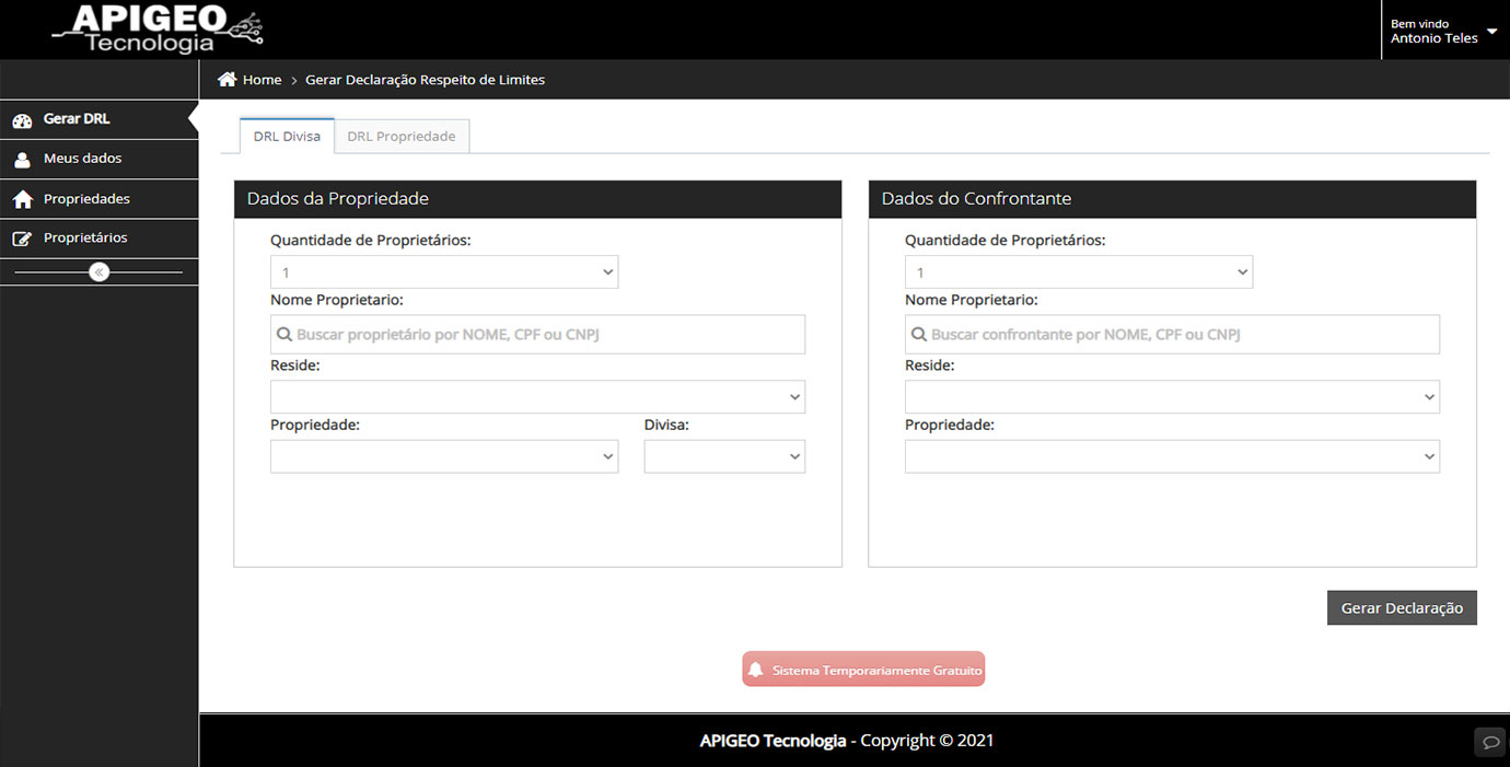 O sistema de gerar declaração de reconhecimento de limites, tem por fim melhorar o desempenho de geração das declarações, afim de agilizar e guarda em base de dados todas as informações dos proprietários, confrontantes e suas propriedades. Sendo possível acessar a qualquer momento em qualquer lugar.